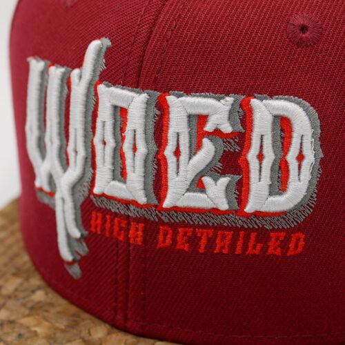 Discover the unique style of the Woed Rose Trucker Snapback Cap, designed for those seeking a bold look. Made of high-quality Bordeaux red acrylic fabric, this cap stands out instantly thanks to the 3D embossed Woed tattoo-style logo on the front. The top of the flap is lined with dark brown cork for an authentic look, while the bottom displays vintage tattoo-rose artwork that adds a touch of nostalgia. The plastic snap closure ensures a perfect fit.