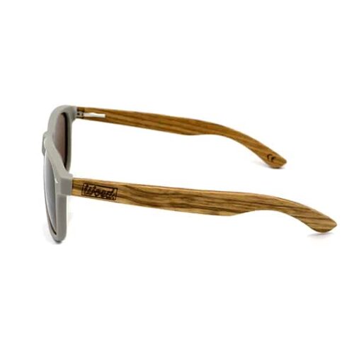 Woed’s Stone Oak sunglasses combine style and comfort in a timeless design. The matte light gray plastic frame gives a modern look, while the dark brown wooden legs provide a natural and luxurious touch.