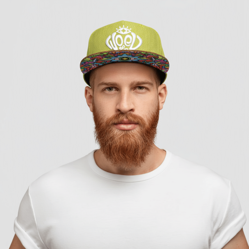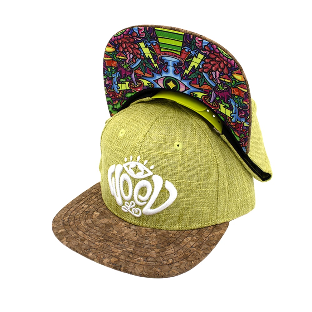Fabriquée à partir d’un mélange durable de chanvre et de coton, la casquette Snapback "Trippy Third Eye" est à la fois résistante et respirante. La teinte verte sert de toile parfaite pour l’œuvre d’art visionnaire de Lei Melendres, avec un logo Woed brodé en 3D en blanc, conçu de manière complexe dans son style caractéristique.
