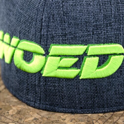 ✔ Diep donkerblauwe kleur met een opvallend geborduurd Woed-logo in arcade-stijl.